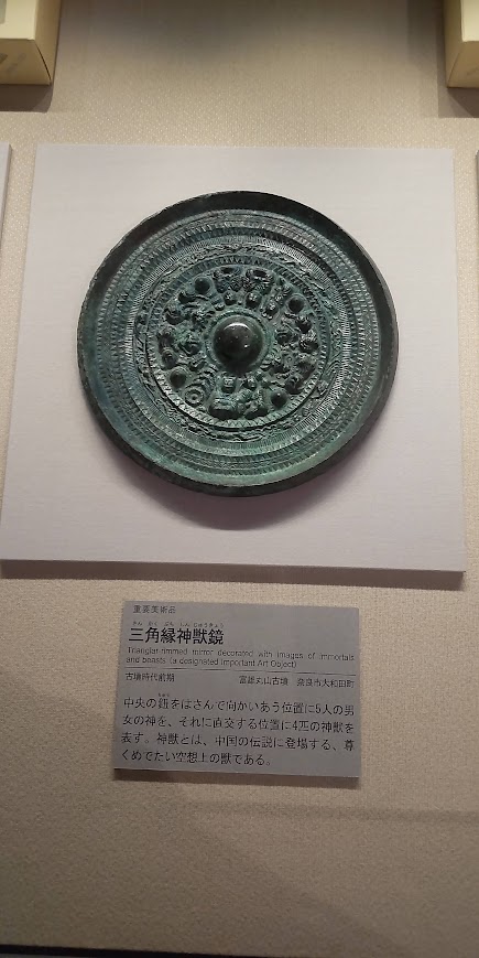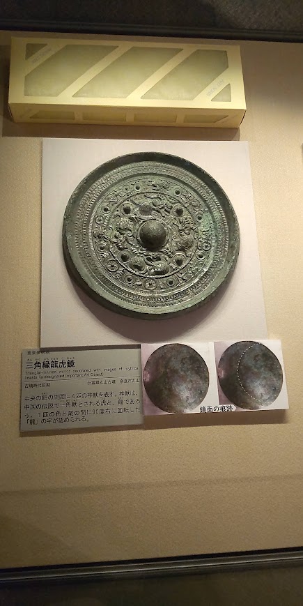 これが今回京博の勾玉形銅製品と痕跡が一致したという三角縁神獣鏡です。